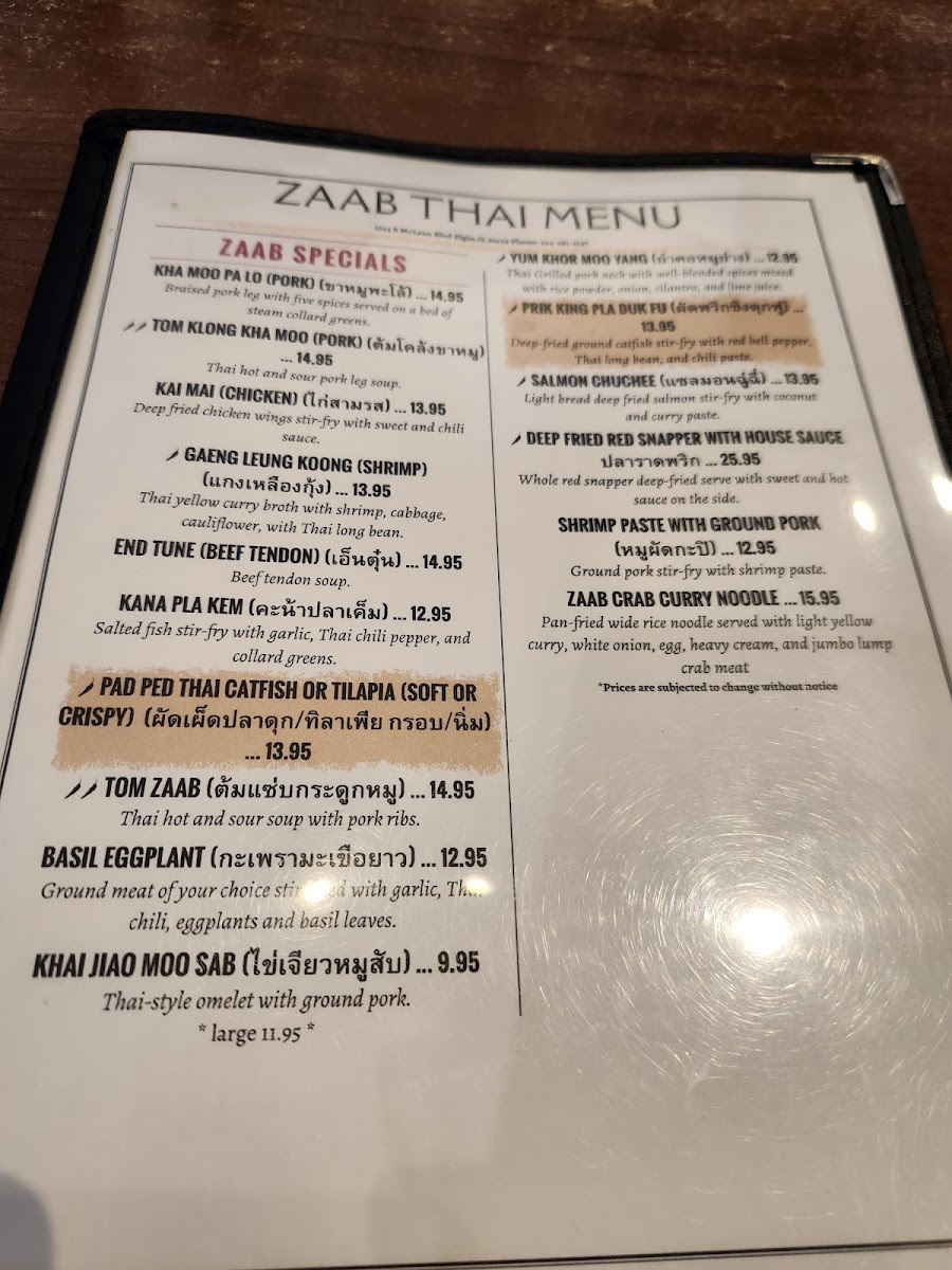 The ambiance is inviting, making it a great spot for families and friends to gather. Guests appreciate the attention to accommodating dietary restrictions, ensuring everyone can enjoy their meal. With offerings like fried ground catfish and basil duck, ZAAB THAI not only appeals to traditional palates but also delights those seeking innovative options.