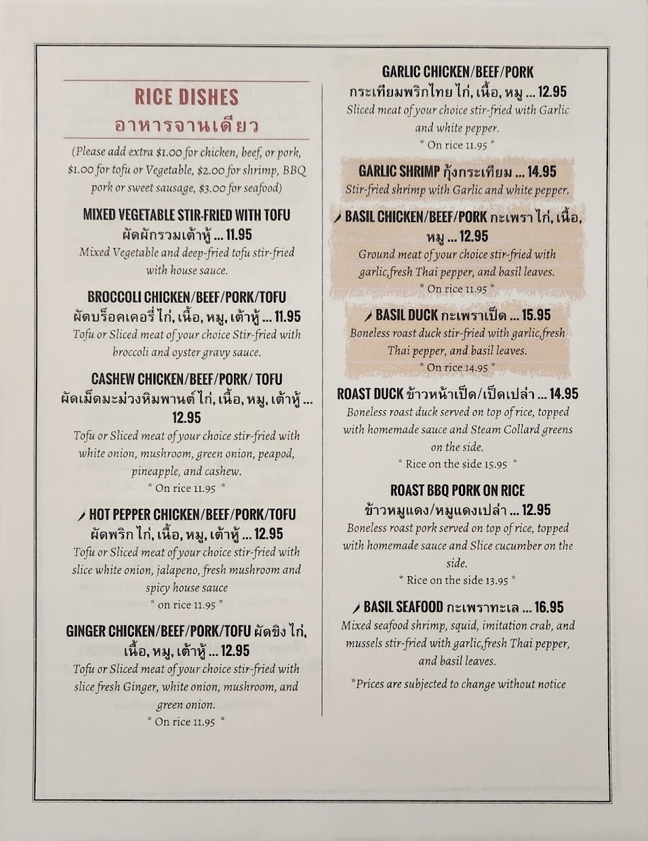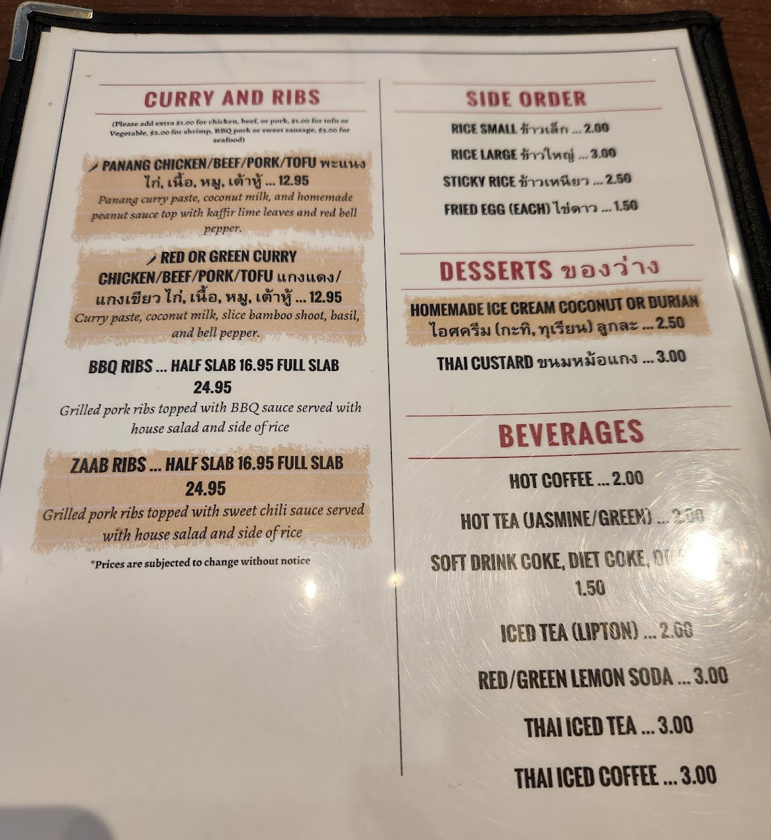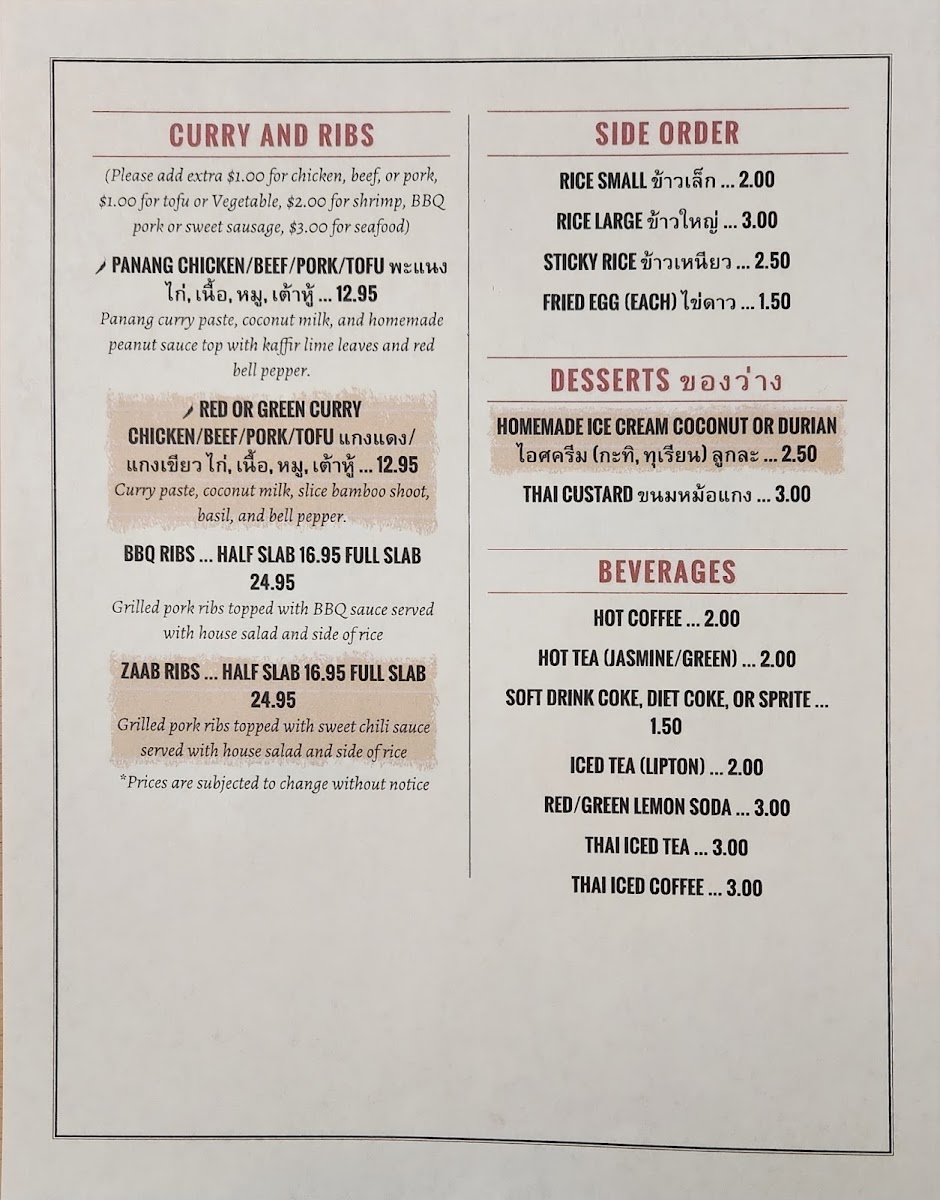Highlighted by rave reviews, dishes like the Panang Curry and Pad Thai offer a delightful dance of spice and flavor. Customers have praised the fresh ingredients and the chef's masterful ability to balance taste and heat.